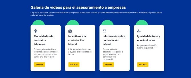 La Galería de Videos para el Asesoramiento a Empresas son recursos formativos en formato video que forman parte de los servicios garantizados de la Cartera Común del Servicios del Sistema Nacional de Empleo.